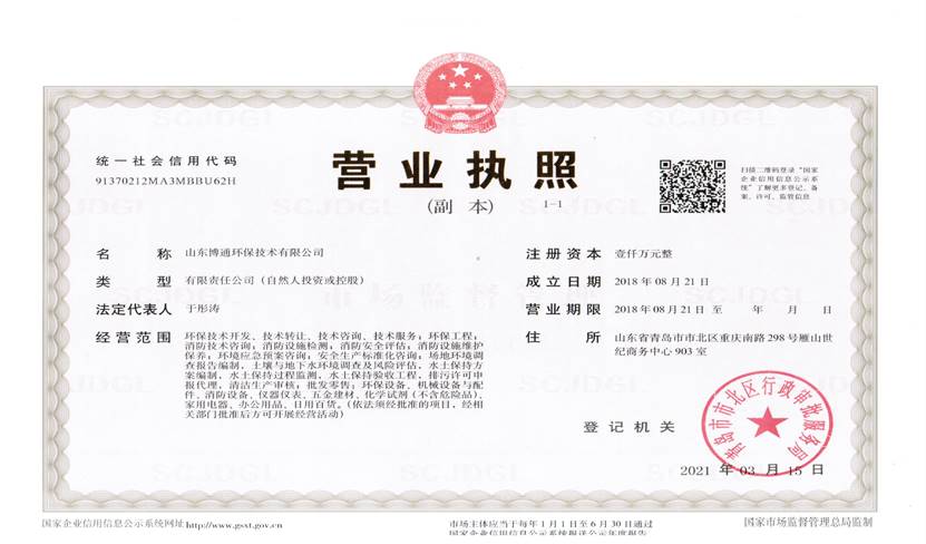 山東博通環(huán)保技術有限公司是一家專業從事環(huán)保、安全、消防的多元化技術服務公司,公司致力于打造專業的技術服務團隊,立足青島,輻射山東,服務范圍涵蓋:環(huán)保技術開發(fā)、技術轉讓、技術咨詢、技術服務;環(huán)保工程;消防技術咨詢;消防設施檢測;消防安全評估;消防設施維護保養;環(huán)境應急預案咨詢;安全生產標準化咨詢;場地環(huán)境調查報告編制,土壤與地下水環(huán)境調查及風險評估,水土保持方案編制,水土保持過程監(jiān)測,水土保持驗收工程,排污許可申報代理,清潔生產審核;...